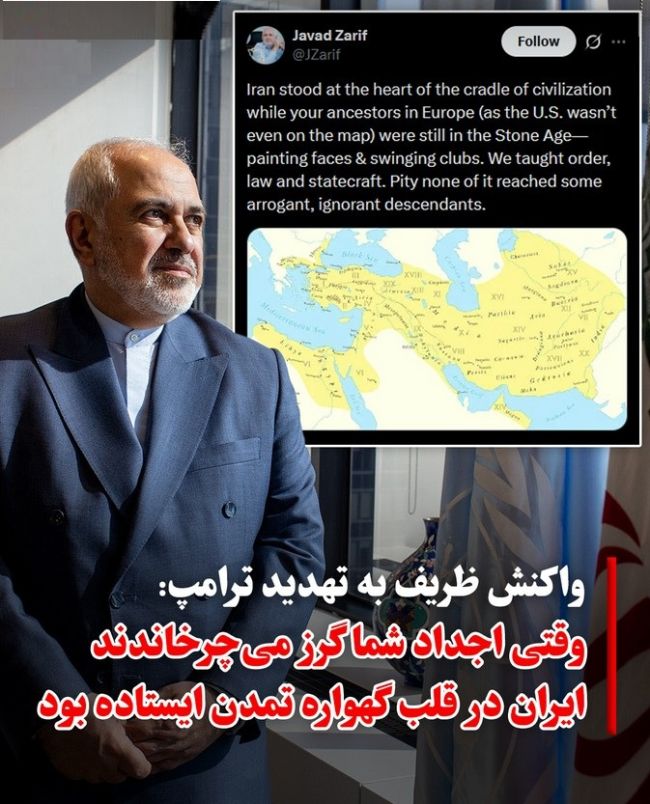 ایندیپندنت فارسی: محمدجواد ظریف، وزیر خارجه پیشین جمهوری اسلامی با انتشار نقشهای از حوزه فرمانروایی ایران باستان در شبکه اجتماعی ایکس، به اظهارات دونالد ترامپ که گفته بود «ایران را به عصر حجر باز میگرداند» واکنش نشان داد.ظریف نوشت: «ایران در قلب گهواره تمدن ایستاده بود، آن هم زمانی که اجداد شما در اروپا (چرا که آمریکا هنوز حتی روی نقشه هم نبود) در عصر حجر بودند؛ صورتهایشان را رنگ میکردند و گرز میچرخاندند. ما نظم، قانون و فنِ کشورداری را آموزش دادیم. مایه تاسف است که هیچکدام از اینها به گوش برخی از نوادگان مغرور و نادانشان نرسیده است.»