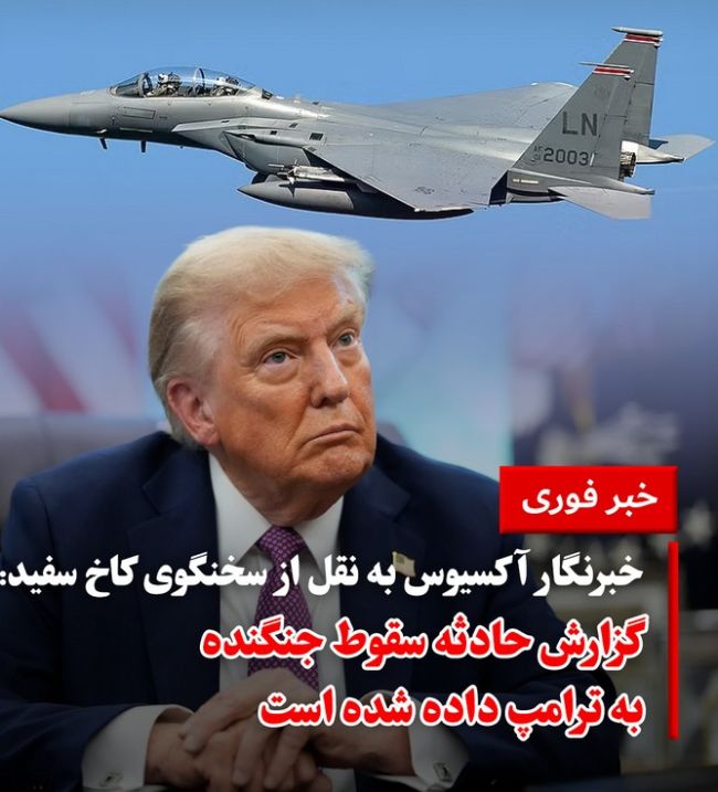 فاکس نیوز و نیوزمکس گزارش میدهند که دونالد ترامپ، رئیس جمهوری آمریکا در جریان آخرین جزئیات مربوط به سقوط یک فروند جنگنده اف-۱۵ ایالات متحده در خاک ایران قرار گرفته است. مقامات دولت و ارتش آمریکا تا این لحظه جزئیات این خبر را رسما اعلام نکردهاند.