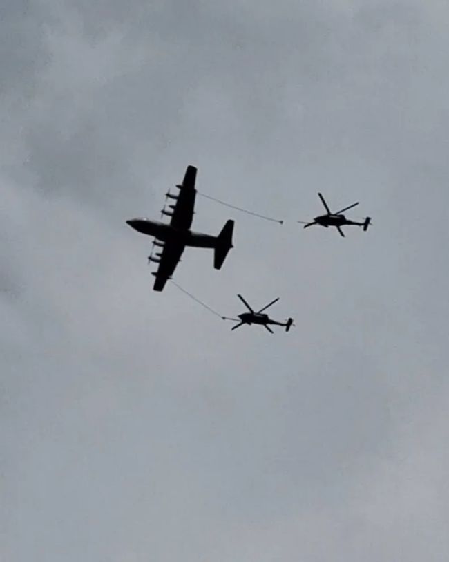 تصاویر منتشر شده در شبکههای اجتماعی که سیبیاس تایید کرده، نشان میدهد که یک هواپیمای سوخترسان و دو هلیکوپتر در ارتفاع پایین در استان خوزستان در حال پرواز هستند، که با یک مأموریت جستوجو و نجات همخوانی دارد.