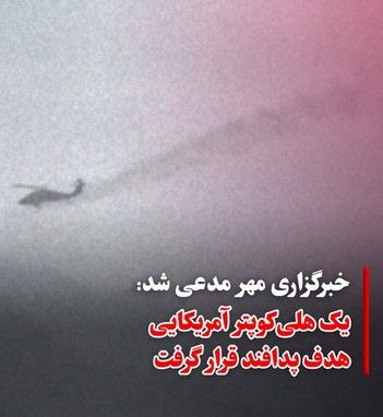 خبرگزاری مهر مدعی شد: یک هلیکوپتر آمریکایی هدف پدافند قرار گرفت