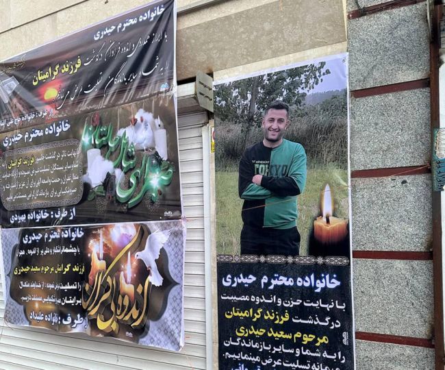 بنر تسلیت روی دیوار منزل بابت کشته شدن سعیدی حیدری در اعتراضات دیماه در اسلامشهرایندیپندنت فارسی: امیرحسین میراسماعیلی
