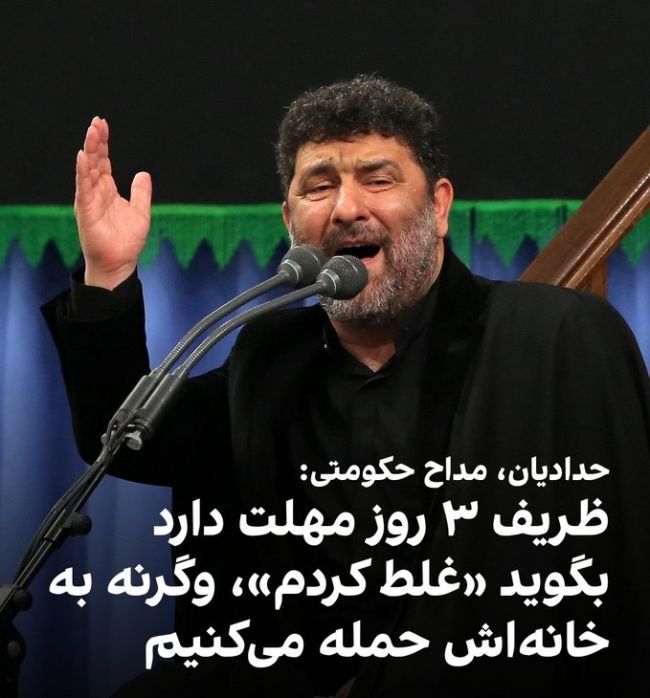 حدادیان، مداح حکومتی: ظریف سه روز وقت دارد بگوید غلط کردم و گرنه به خانهاش حمله میکنیم