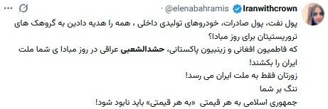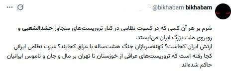 نظرات برخی کاربران ایرانی در مورد جولان نیروهای حشد الشعبی عراق و فاطمیون افغانستان در تهران