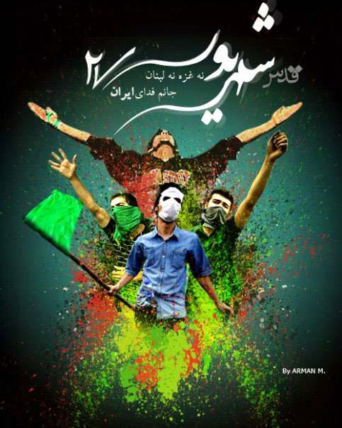| عاشقخاک وطن - ایران - تهران | درود بر آنان که در لحظه لحظه تاریخ میهنمان ظلم و ستم را برنتافتند و مشعل مبارزه با ستمگران را ، همواره شعله ور نگاه داشتند و به دست ما سپردند تا به بلند آزادی برسانیم . درود بر شما که در رزم پیگیرتان با لشگر ظلم ، درنگ و خستگی نمیشناسید و برای رهایی مردم در بند، بر سر سوگند ایستاده اید. پایدار باد آن نیروی لایزال که از خون شهیدان در پیکر مقاومت عادلانه مردم جاریست و پیروزی نهایی بر اهریمن جور و ستم را ، ضمانت میکند. و فروزان باد مشعل راهنمای رهبری که مقاومت مردم ما را از راههای دشوار عبور داده و هر لحظه به سر منزل مقصود نزدیکتر میسازد. زنــــده بـــاد آزادی ، زنــــده بـــاد ایـــــــــــران. | پنجشنبه 26 شهریور 1388 |