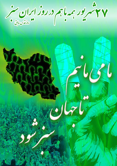 | Alireza88 - ایران - تهران | دوستان با وجود پوشش خبری خارجی مراسم با آرامش در روز قدس شرکت کنید. زنده باد راه سبزمان | پنجشنبه 26 شهریور 1388 |