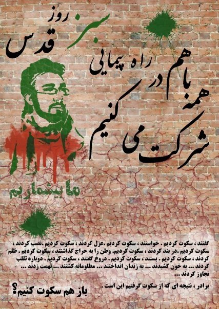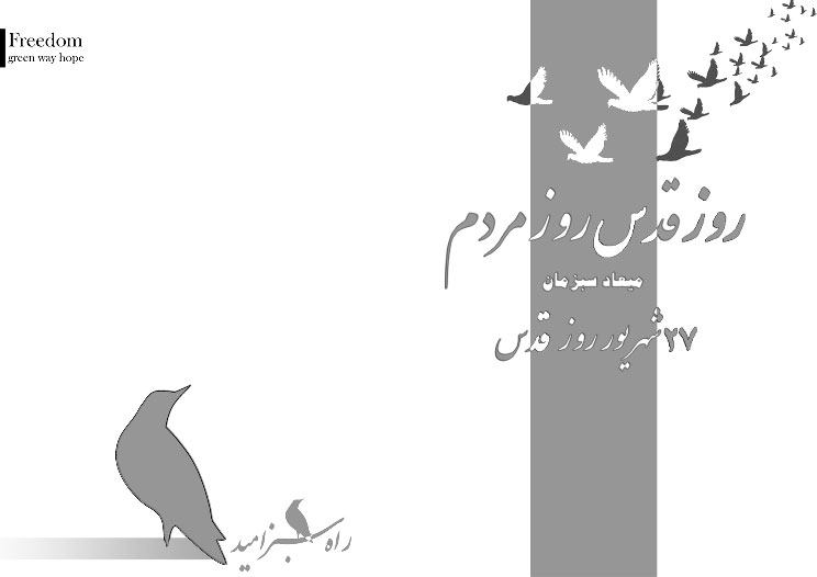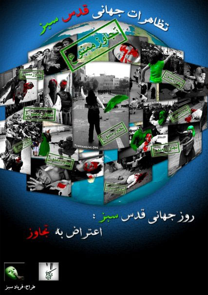 | گروهبان قندلی - ایران - تهران | پوسترهای فراخوان راهپیمایی سبز روز قدس در حمایت از رژیم اخوندی و کسب اعتبار در جهان . همه سرکاریم . | پنجشنبه 26 شهریور 1388 |